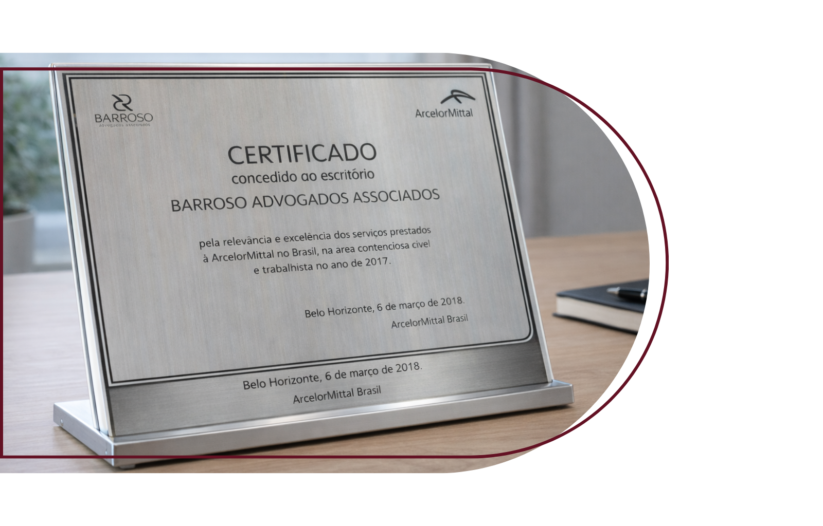 O escritório foi reconhecido pela Revista Análise como um dos mais admirados de Minas Gerais por diversos anos consecutivos, além de receber premiação de excelência concedida por um dos maiores grupos industriais do mundo.